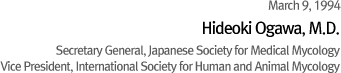 On behalf of the Japanese Society for Medical Mycology (JSMM) I want to express our sincere gratitude to all of you in this special occasion of the birth of KSMM. We expect that KSMM will be able to meet the developments in basic and clinical medical sciences. We think this society will be widely accepted in professional circles and by other research societies in Korea as well as abroad.